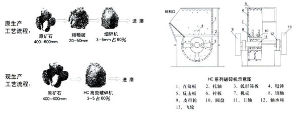 HC系列高效節能破碎機是我廠工程技術人員經過反復實踐與探索研制出的一種新型產品,它廣泛適用于石料廠、人工砂和水泥生料原料破碎,尤其適宜對石灰石、白云石、頁巖、石膏礦、塋石、煤矸等中硬脆性物料的破碎,進料粒度大,出料粒度小且均勻,并且可根據不同需要選擇和預定篩板,是礦山、水泥、建材企業比較理想的1級破碎設備。改寫了水泥生料的制備工藝;減少了1/3的設備投資;節省1/2的電耗,省去大量的維修費用。